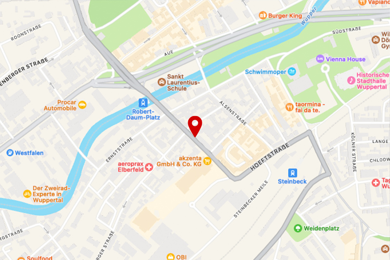 Die Räumlichkeiten befinden sich in der Tannenbergstr. 43 in 42103 Wuppertal. Die Tannenbergstraße befindet sich im Wuppertaler Zentrum, nahe der historischen Stadthalle, dem Arrenberg und dem Luisenviertel. Der Hauptbahnhof ist gut mit dem Nahverkehr oder zu Fuß erreichbar. Im Stadtteil findet eine Quartierarbeit statt. Dort gibt es niederschwellige Kunst, Kulturangebote und einige kleine soziale Initiativen. Der Arrenberg zählt zu den aufstrebenden Orten der Stadt und zieht viele Menschen an. In unmittelbarer Nähe befinden sich Super- und Baumärkte.